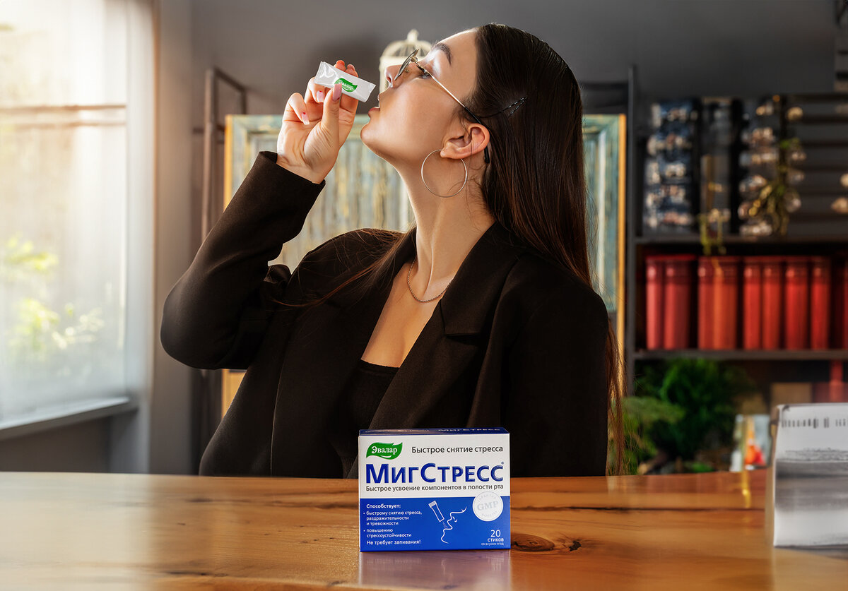 Или когда эмоции уже на пределе: представьте – вы застряли в пробке, опаздываете на важную встречу, вы в ярости. Достаете стик МигСтресс, рассасываете порошок с приятным ягодным вкусом — и через полминуты чувствуете, как волнение отступает, дыхание выравнивается, а ум проясняется. Теперь вы готовы действовать, а не паниковать!