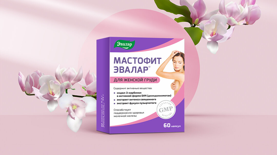 Для поддержки здоровья женской груди компания Эвалар создала Мастофит – негормональный растительный комплекс с улучшенным ингредиентным составом усиленного действия [6]. Капсулы "Мастофит" – это целый комплекс тщательно подобранных ингредиентов: